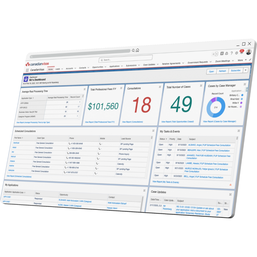 Optimize your Canadian immigration practice with our all-in-one platform. Automate workflows, streamline operations, and stay connected with seamless integrations. Gain real-time insights, enhance client relationships, and manage client cases effortlessly—all in one powerful system that conforms to you.